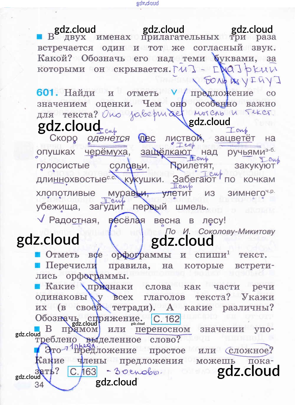 Ответ на задание 34 Рабочая тетрадь Русский язык за 4 (четвертый) класс Соловейчик, Кузьменко Гармония 2012 Часть 1, 2, 3