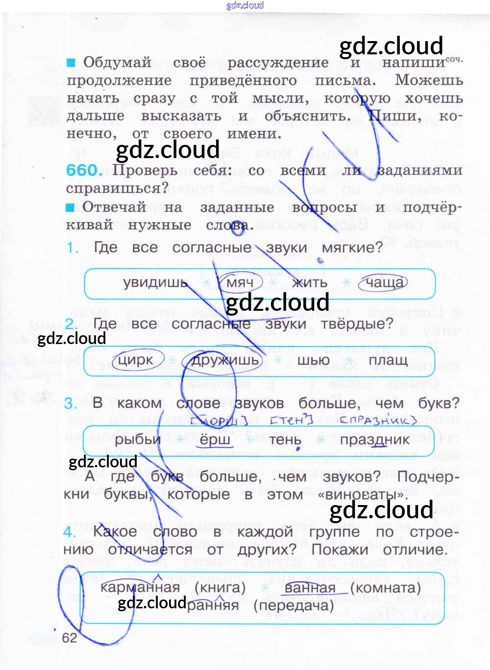 Ответ на задание 62 Рабочая тетрадь Русский язык за 4 (четвертый) класс Соловейчик, Кузьменко Гармония 2012 Часть 1, 2, 3