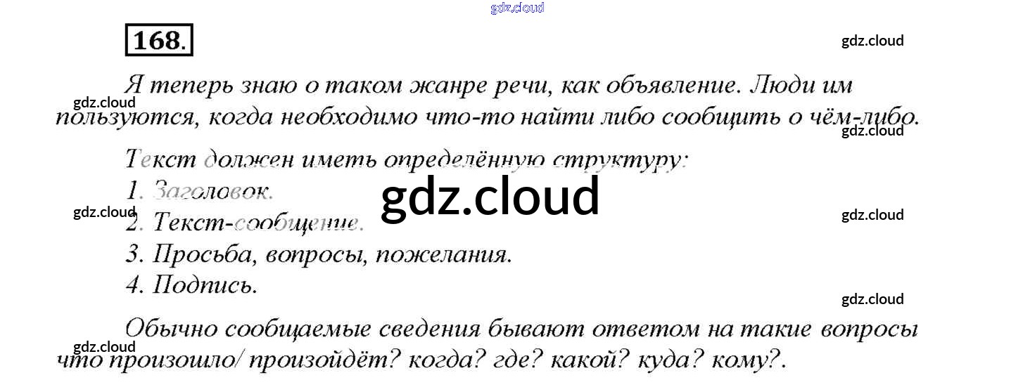 Ответ на задание 168 Учебник Русский язык за 4 (четвертый) класс Соловейчик, Кузьменко Гармония 2015 Часть 1, 2