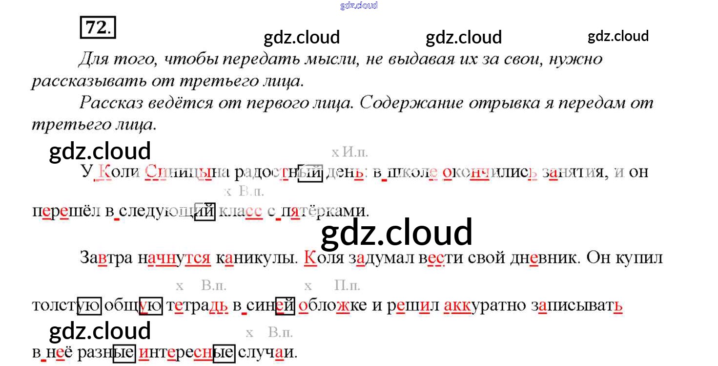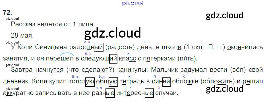 Ответ на задание 72 Учебник Русский язык за 4 (четвертый) класс Соловейчик, Кузьменко Гармония 2015 Часть 1, 2