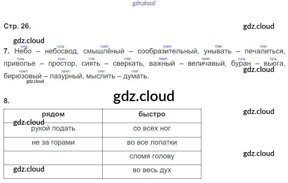 Ответ на задание 26 Рабочая тетрадь Русский язык за 4 (четвертый) класс Тихомирова 2018 Часть 1, 2