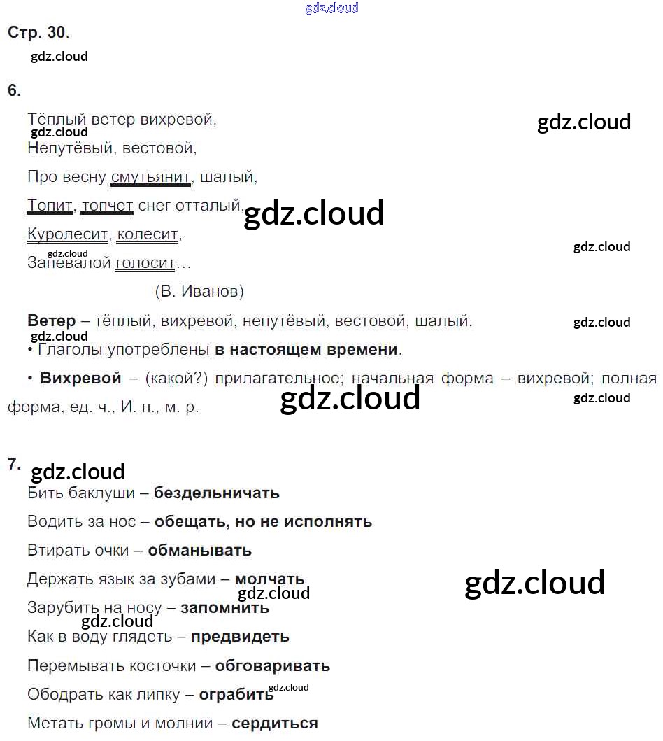 Ответ на задание 30 Рабочая тетрадь Русский язык за 4 (четвертый) класс Тихомирова 2018 Часть 1, 2
