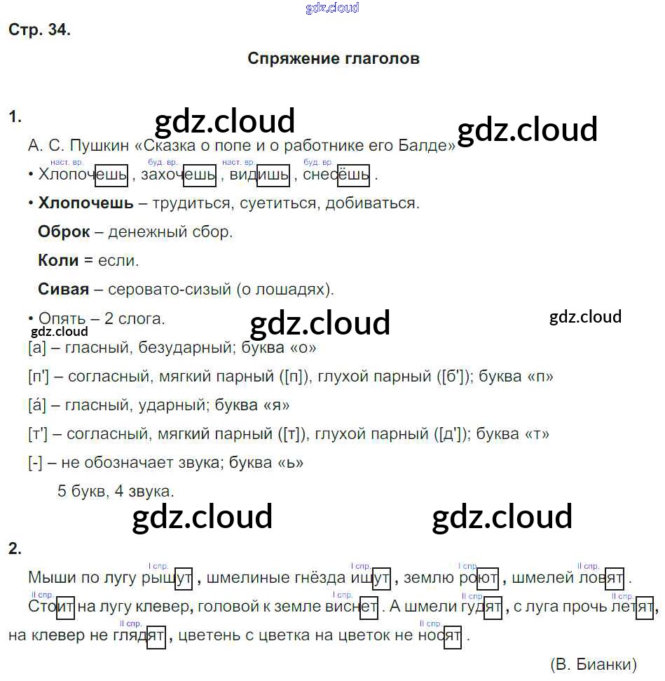 Ответ на задание 34 Рабочая тетрадь Русский язык за 4 (четвертый) класс Тихомирова 2018 Часть 1, 2