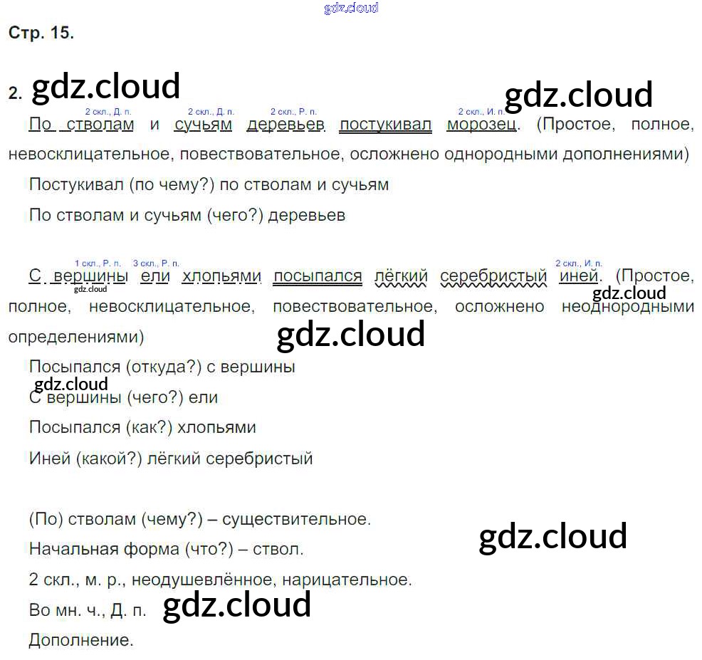 Ответ на задание 15 Рабочая тетрадь Русский язык за 4 (четвертый) класс Тихомирова УМК 2016 Часть 1, 2