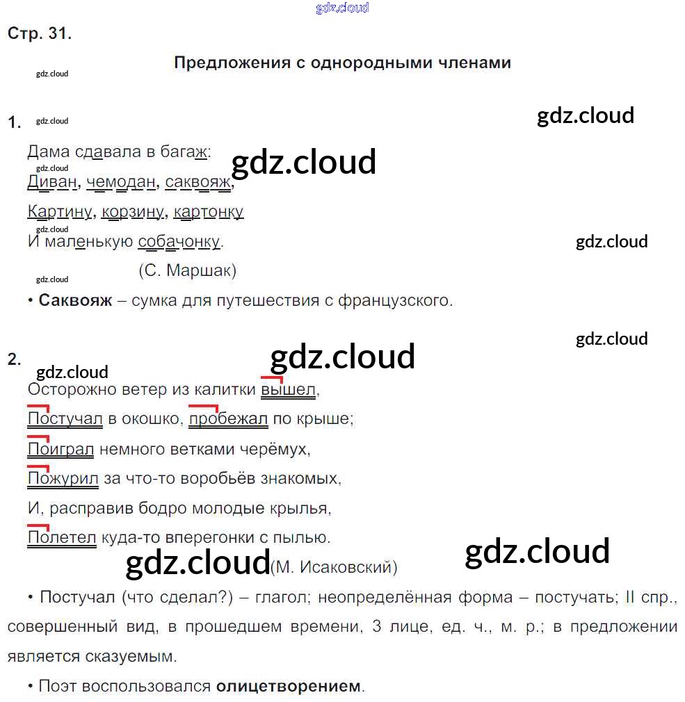 Ответ на задание 31 Рабочая тетрадь Русский язык за 4 (четвертый) класс Тихомирова УМК 2016 Часть 1, 2