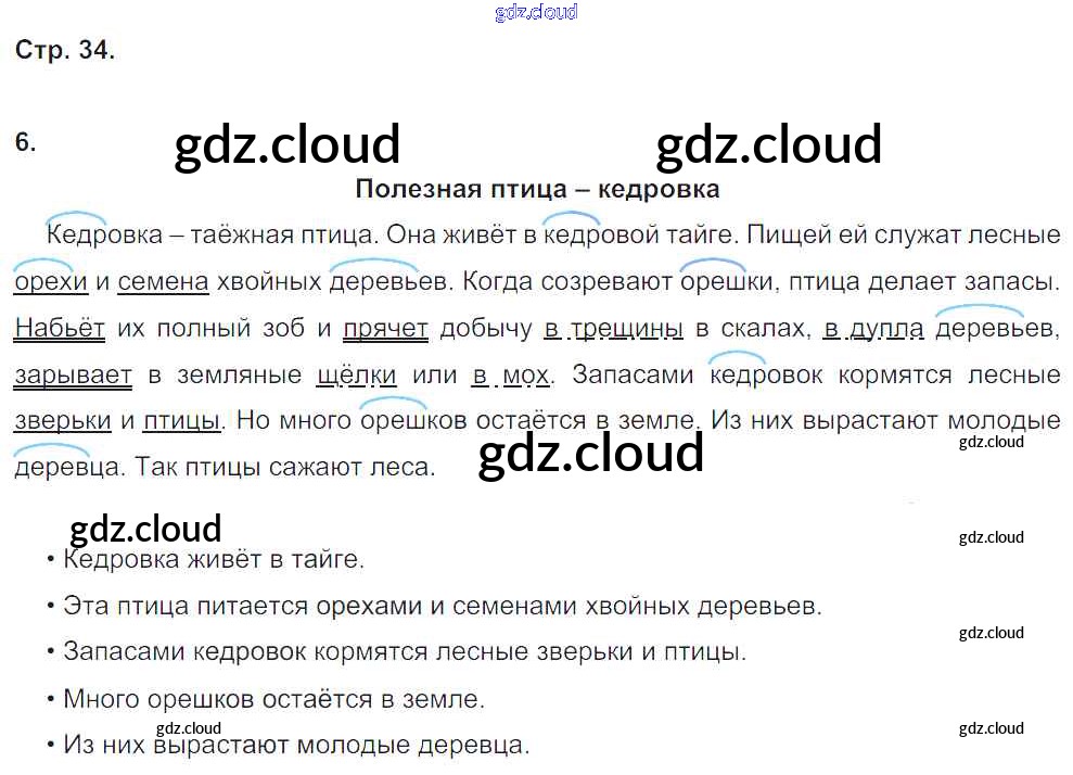 Ответ на задание 34 Рабочая тетрадь Русский язык за 4 (четвертый) класс Тихомирова УМК 2016 Часть 1, 2