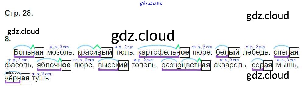 Ответ на задание 28 Рабочая тетрадь Русский язык за 4 (четвертый) класс Тихомирова УМК 2016 Часть 1, 2