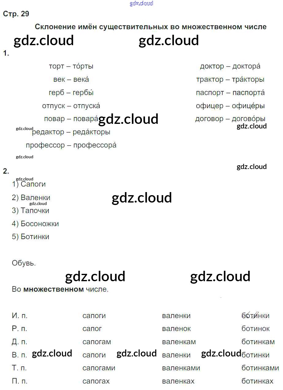 Ответ на задание 29 Рабочая тетрадь Русский язык за 4 (четвертый) класс Тихомирова УМК 2016 Часть 1, 2