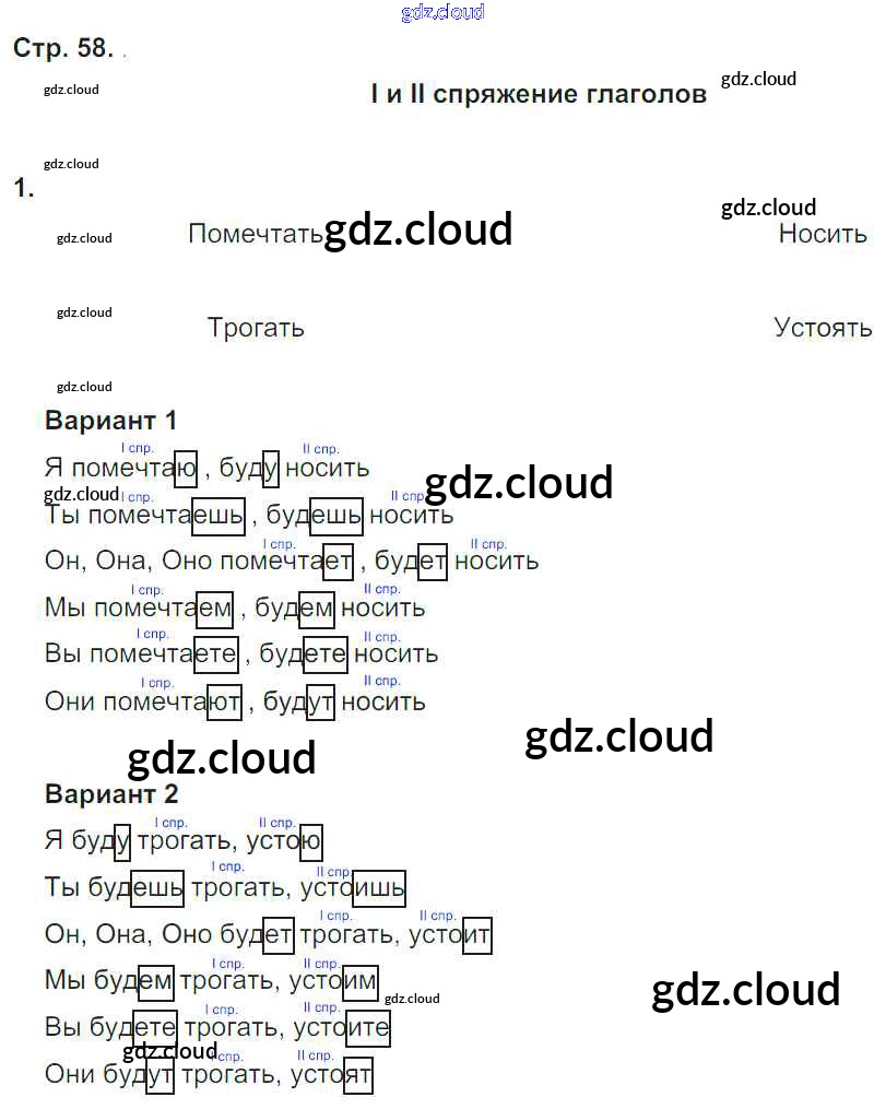 Ответ на задание 58 Рабочая тетрадь Русский язык за 4 (четвертый) класс Тихомирова УМК 2016 Часть 1, 2