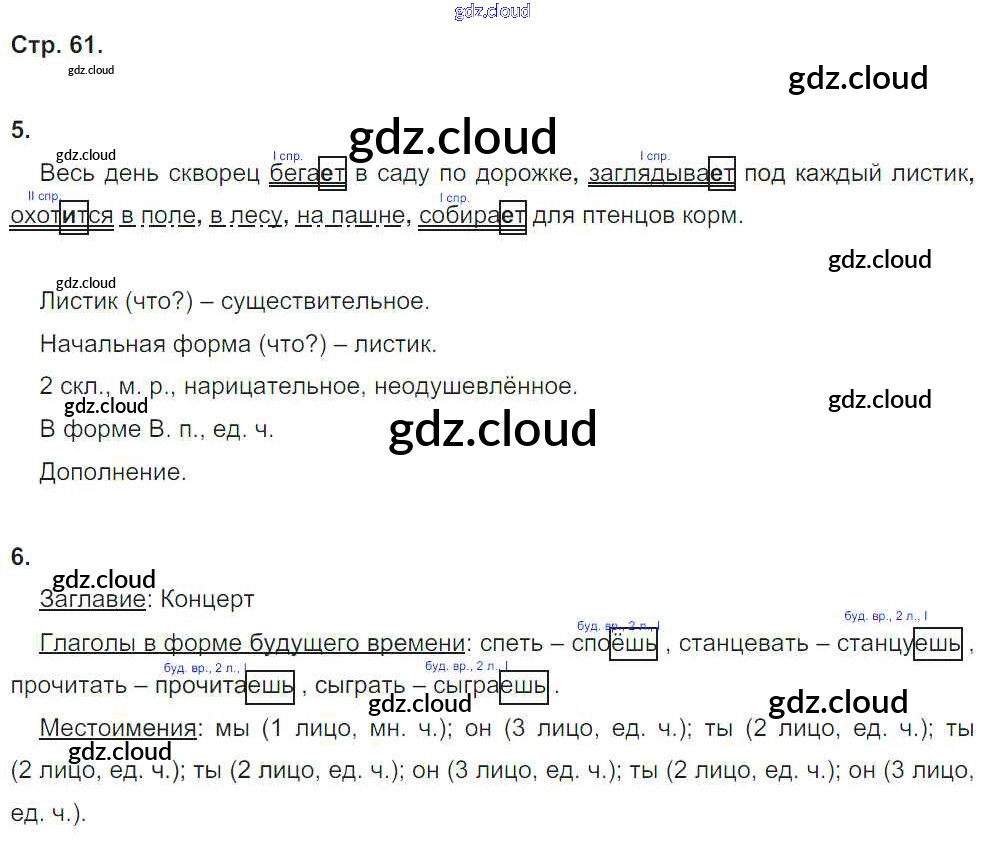 Ответ на задание 61 Рабочая тетрадь Русский язык за 4 (четвертый) класс Тихомирова УМК 2016 Часть 1, 2