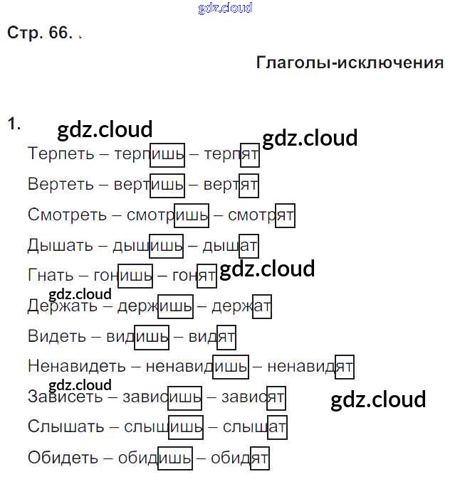 Ответ на задание 66 Рабочая тетрадь Русский язык за 4 (четвертый) класс Тихомирова УМК 2016 Часть 1, 2