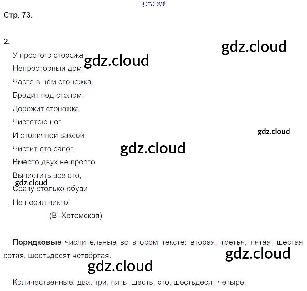Ответ на задание 73 Рабочая тетрадь Русский язык за 4 (четвертый) класс Тихомирова УМК 2016 Часть 1, 2