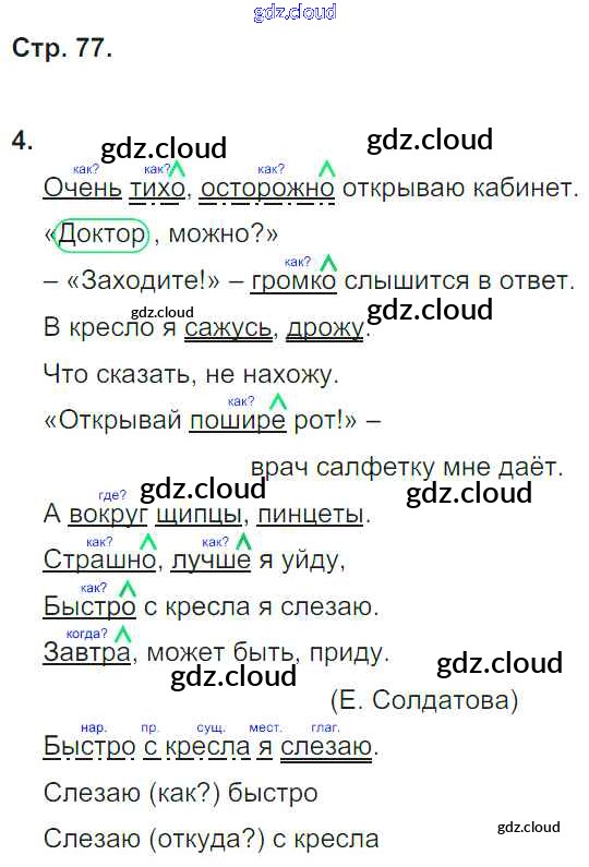 Ответ на задание 77 Рабочая тетрадь Русский язык за 4 (четвертый) класс Тихомирова УМК 2016 Часть 1, 2