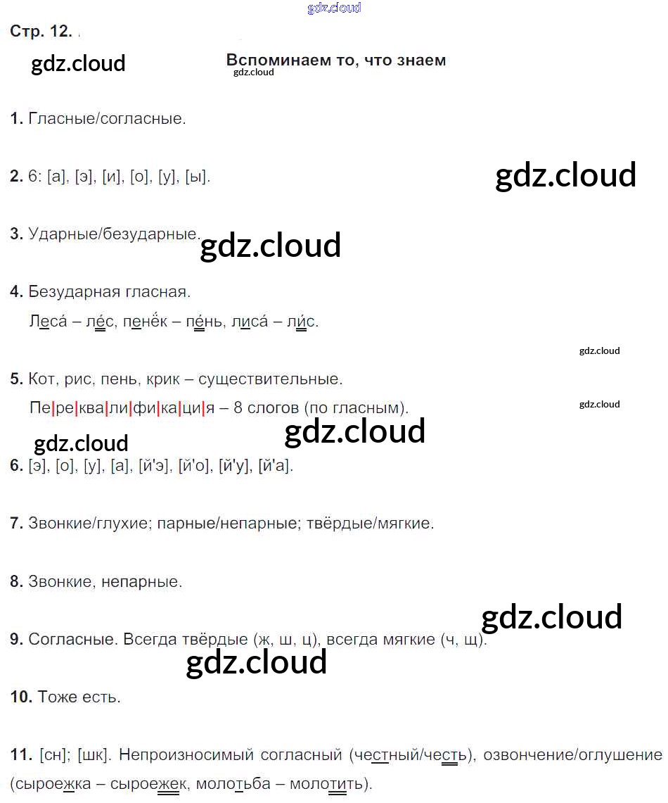 Часть 1. Страницы Ответы к теме: Вспоминаем, то что знаем по Русскому языку 4 класс Учебник Бунеев Школа 2100 Часть 1, 2 Баласс