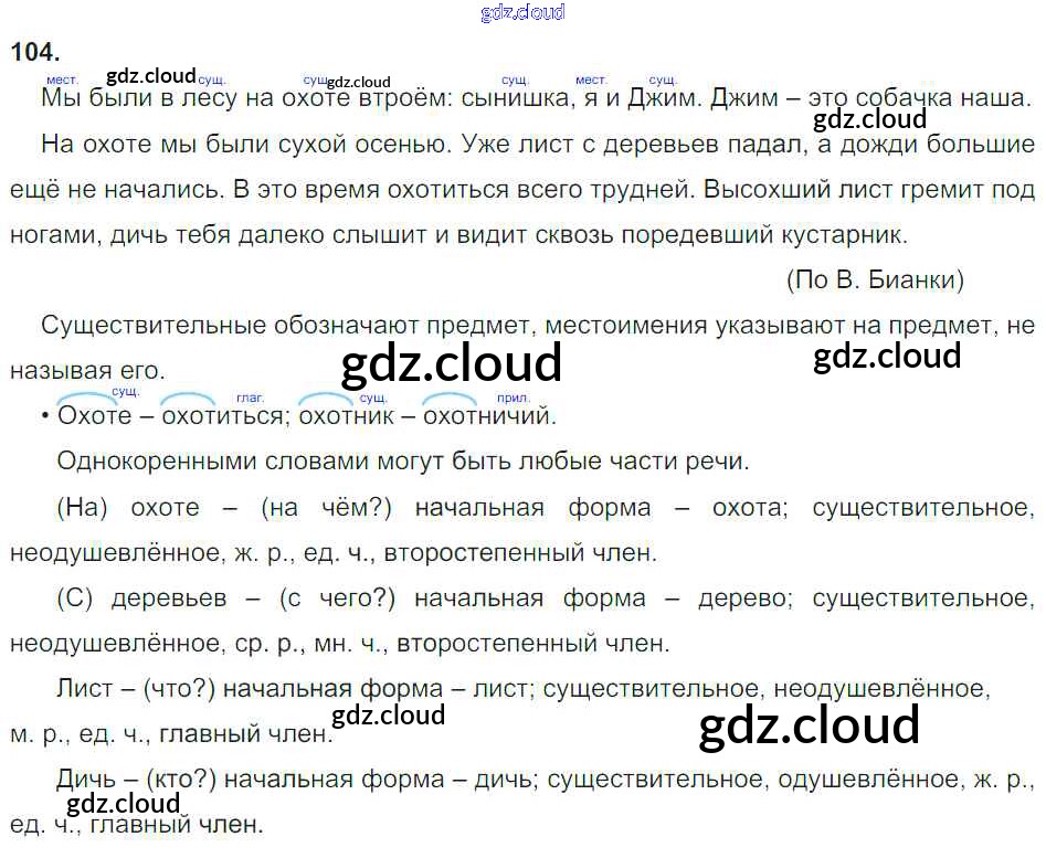 Ответ на задание 104 Учебник Русский язык за 4 (четвертый) класс Бунеев, Бунеева, Пронина Школа 2100 2016 Часть 1, 2