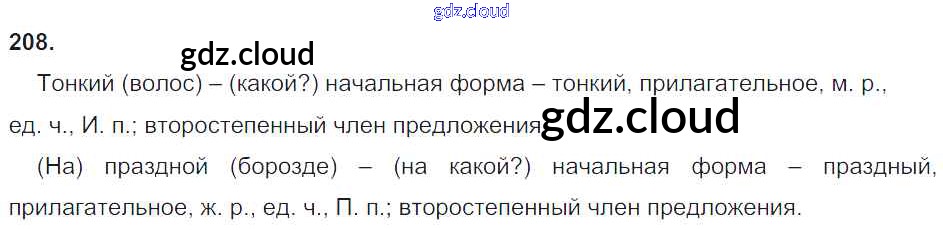 Ответ на задание 208 Учебник Русский язык за 4 (четвертый) класс Бунеев, Бунеева, Пронина Школа 2100 2016 Часть 1, 2