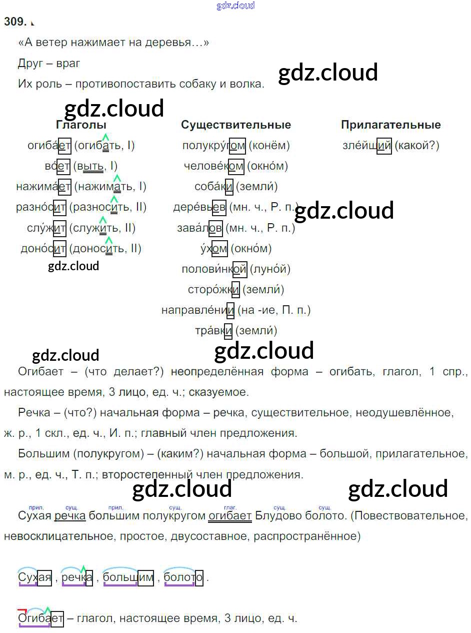 Ответ на задание 309 Учебник Русский язык за 4 (четвертый) класс Бунеев, Бунеева, Пронина Школа 2100 2016 Часть 1, 2