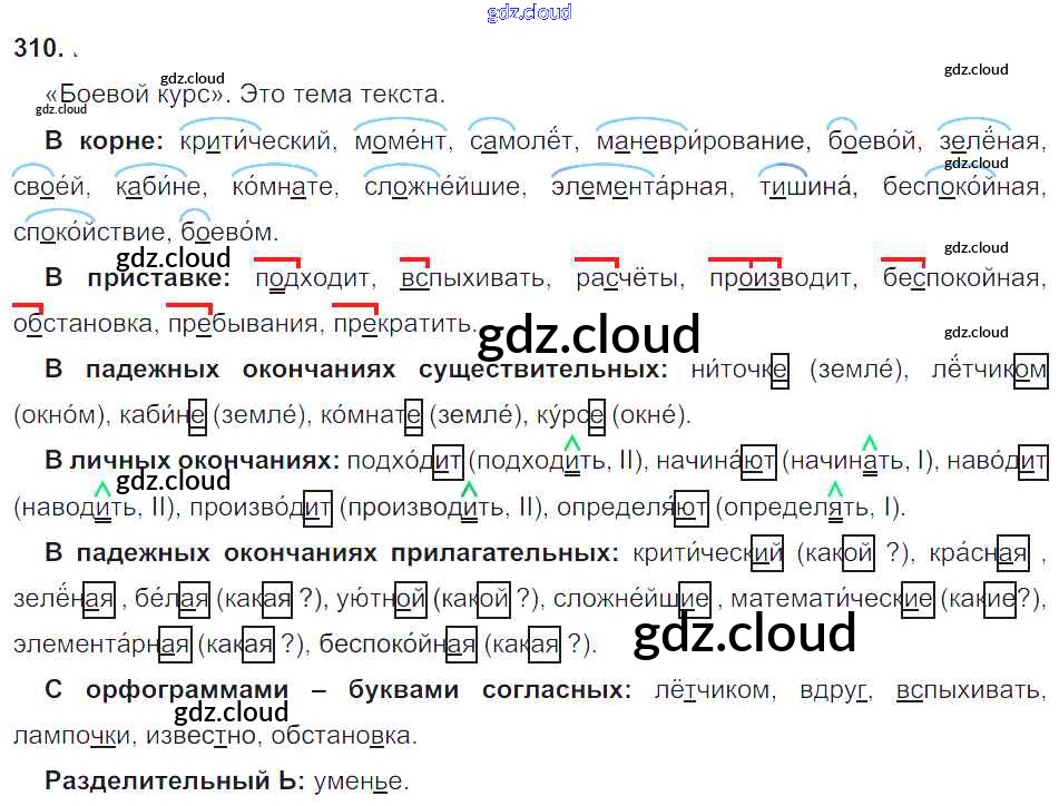 Ответ на задание 310 Учебник Русский язык за 4 (четвертый) класс Бунеев, Бунеева, Пронина Школа 2100 2016 Часть 1, 2