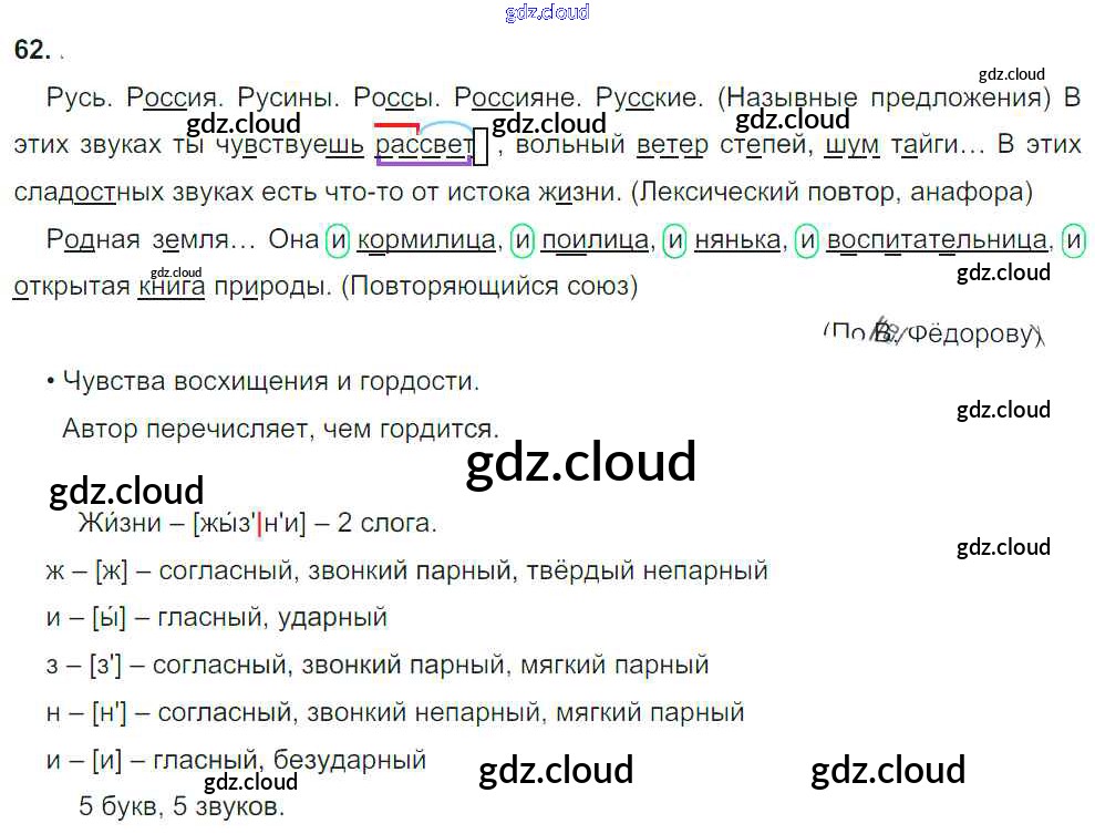 Ответ на задание 62 Учебник Русский язык за 4 (четвертый) класс Бунеев, Бунеева, Пронина Школа 2100 2016 Часть 1, 2