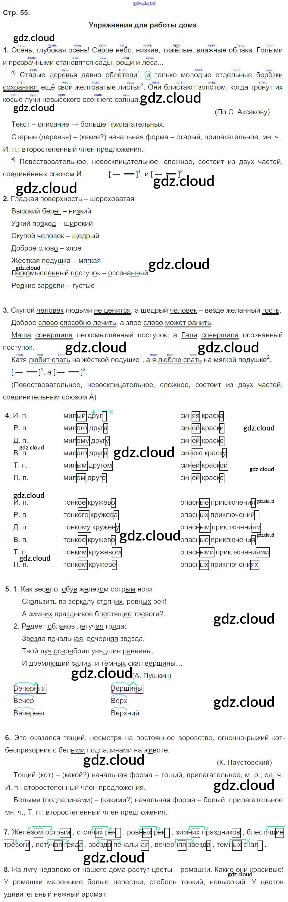 Ответ на задание 55 Учебник Русский язык за 4 (четвертый) класс Бунеев, Бунеева, Пронина Школа 2100 2016 Часть 1, 2