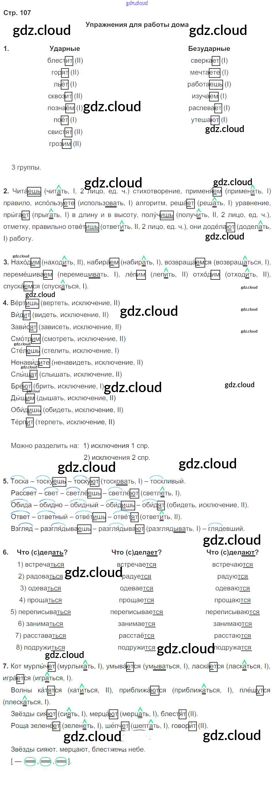 домашнее упражнение / часть 2. страница / 107