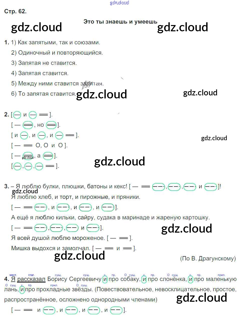 Ответ на задание 62 Учебник Русский язык за 4 (четвертый) класс Бунеев, Бунеева, Пронина Школа 2100 2016 Часть 1, 2