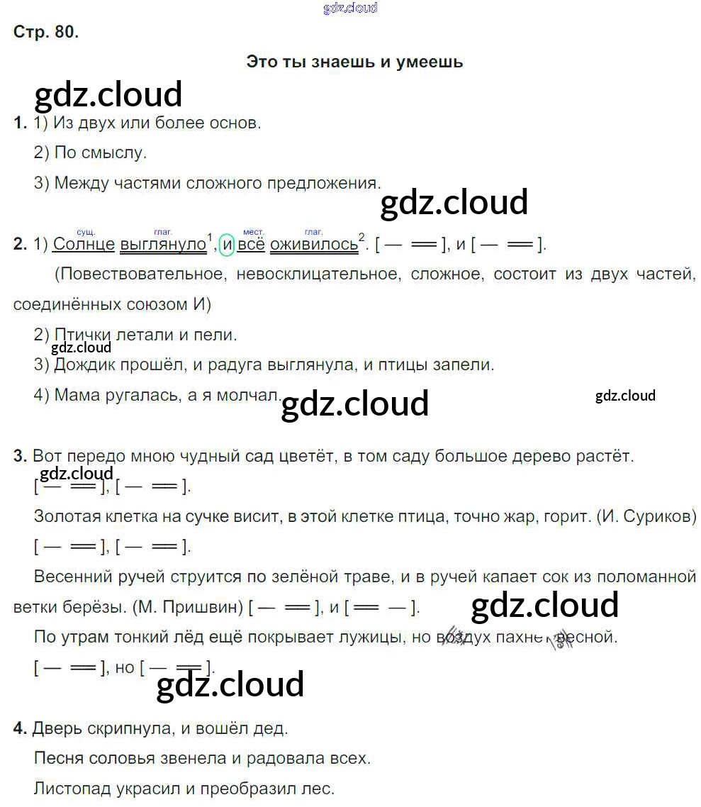 Ответ на задание 80 Учебник Русский язык за 4 (четвертый) класс Бунеев, Бунеева, Пронина Школа 2100 2016 Часть 1, 2