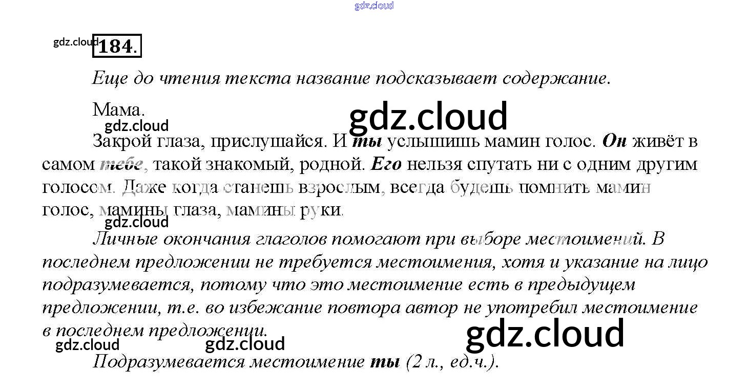 Ответ на задание 184 Учебник Русский язык за 4 (четвертый) класс Желтовская, Калинина Планета знаний 2013 Часть 1, 2