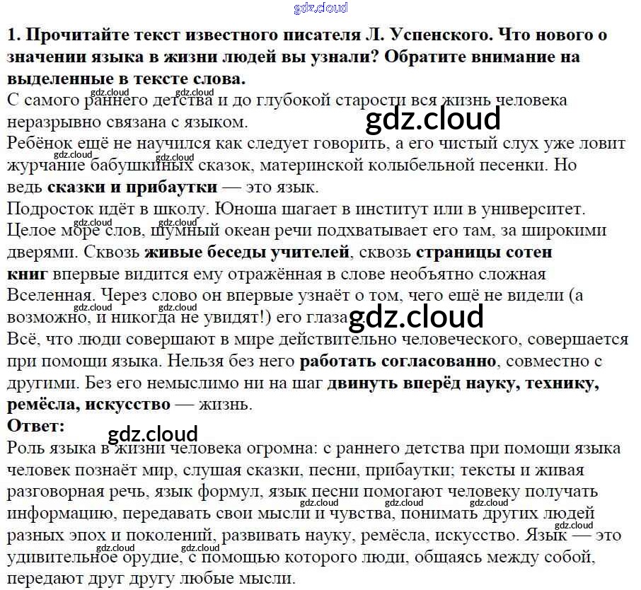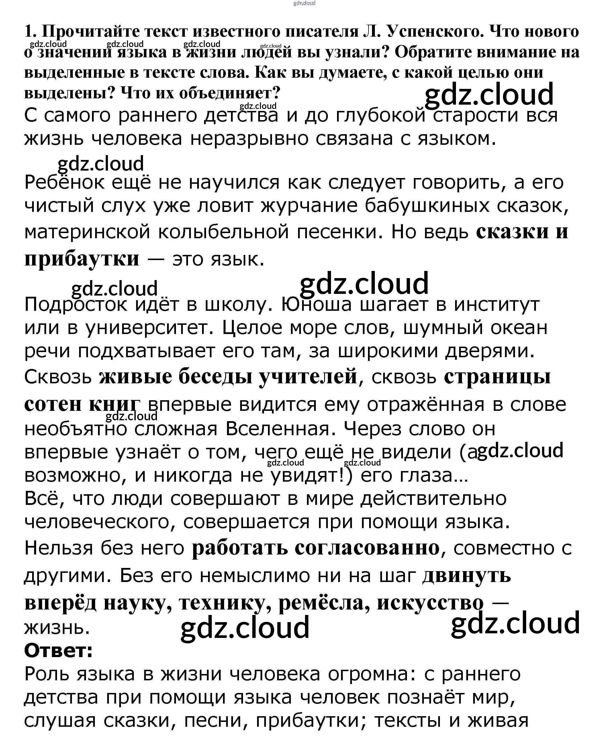 Ответ на задание 1 Учебник Русский язык за 5 (пятый) класс Баранов, Ладыженская, Тростенцова, Кулибаба, Григорян 2016, 2019 Часть 1, 2