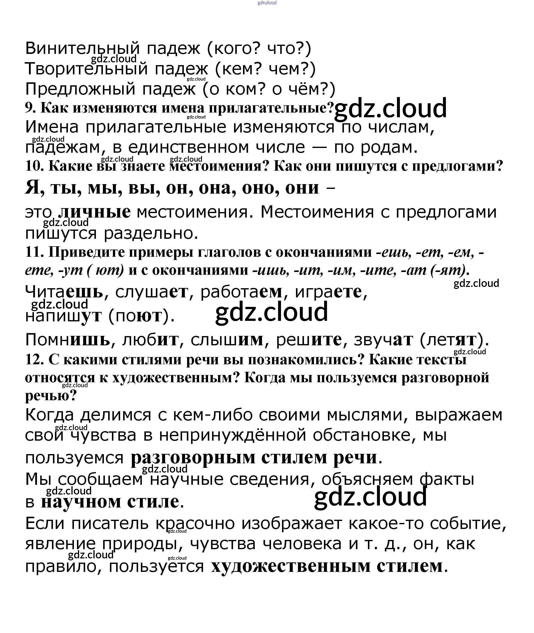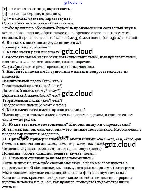 Повторение. Контрольные вопросы и задания Ответы к части 1. Упражнения по Русскому языку 5 класс Учебник Баранов Часть 1, 2 Просвещение, Просвещение