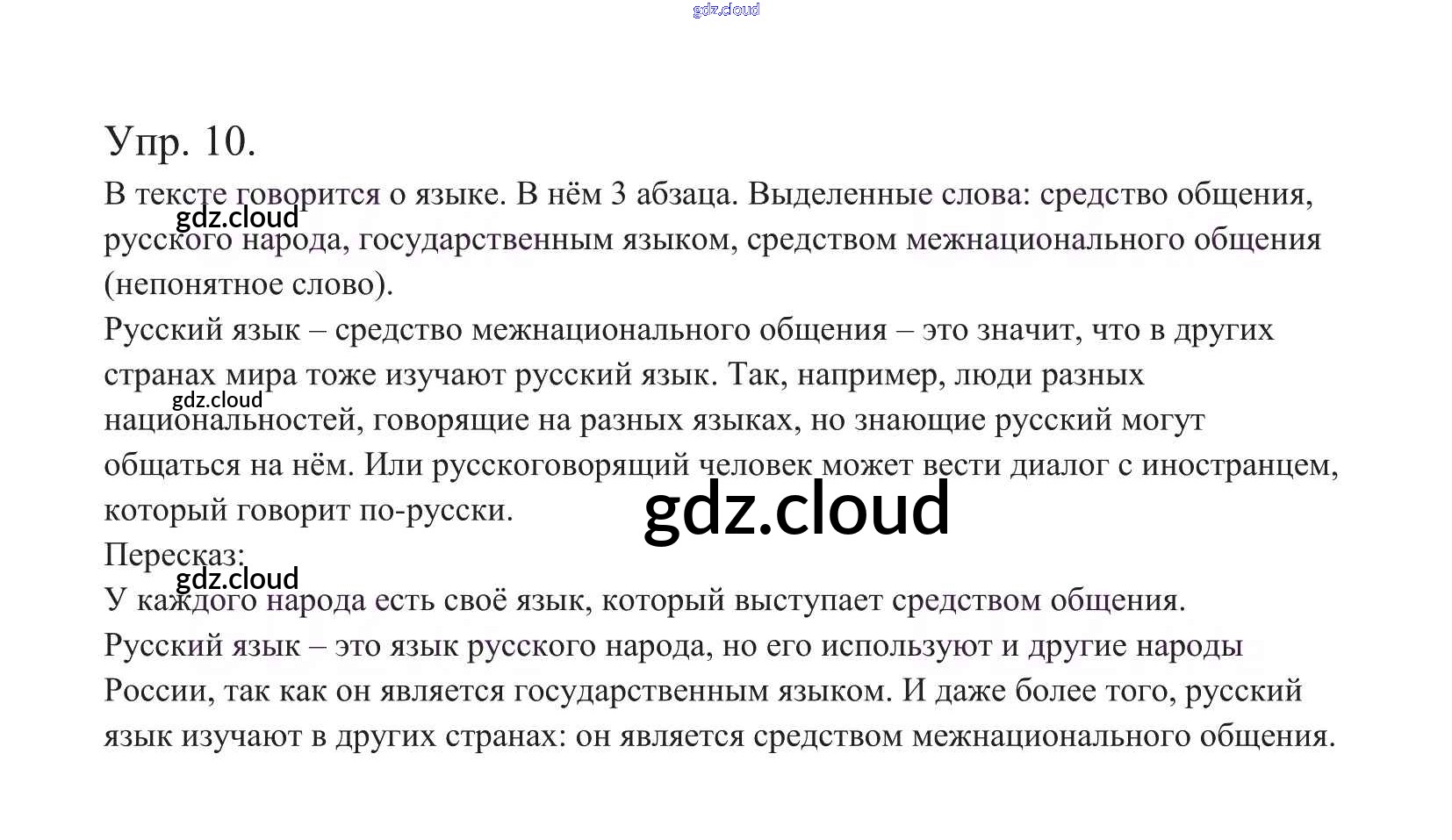 Ответ на задание 10 Учебник Русский язык за 5 (пятый) класс Баранов, Ладыженская, Тростенцова, Кулибаба, Григорян 2016, 2019 Часть 1, 2
