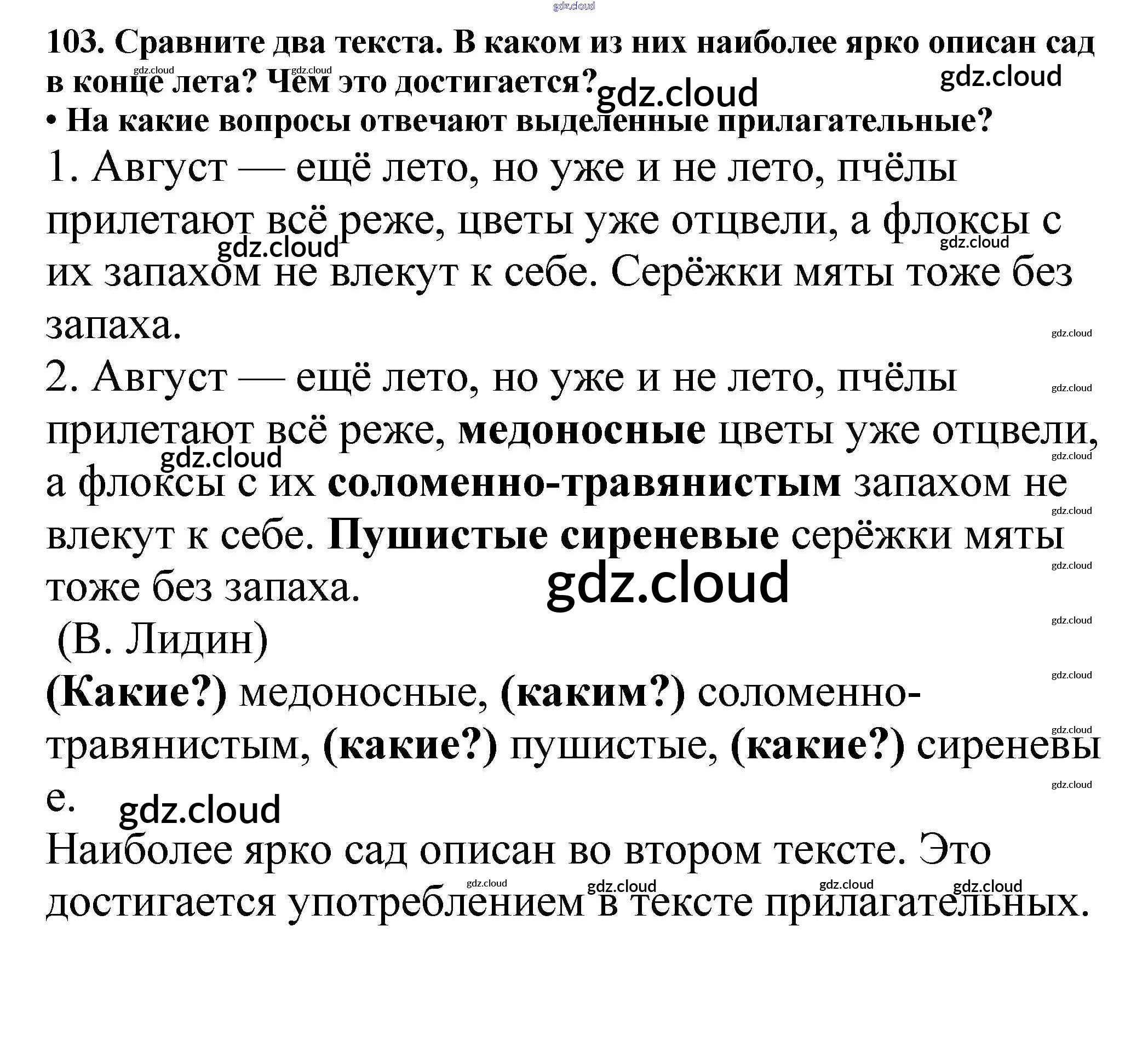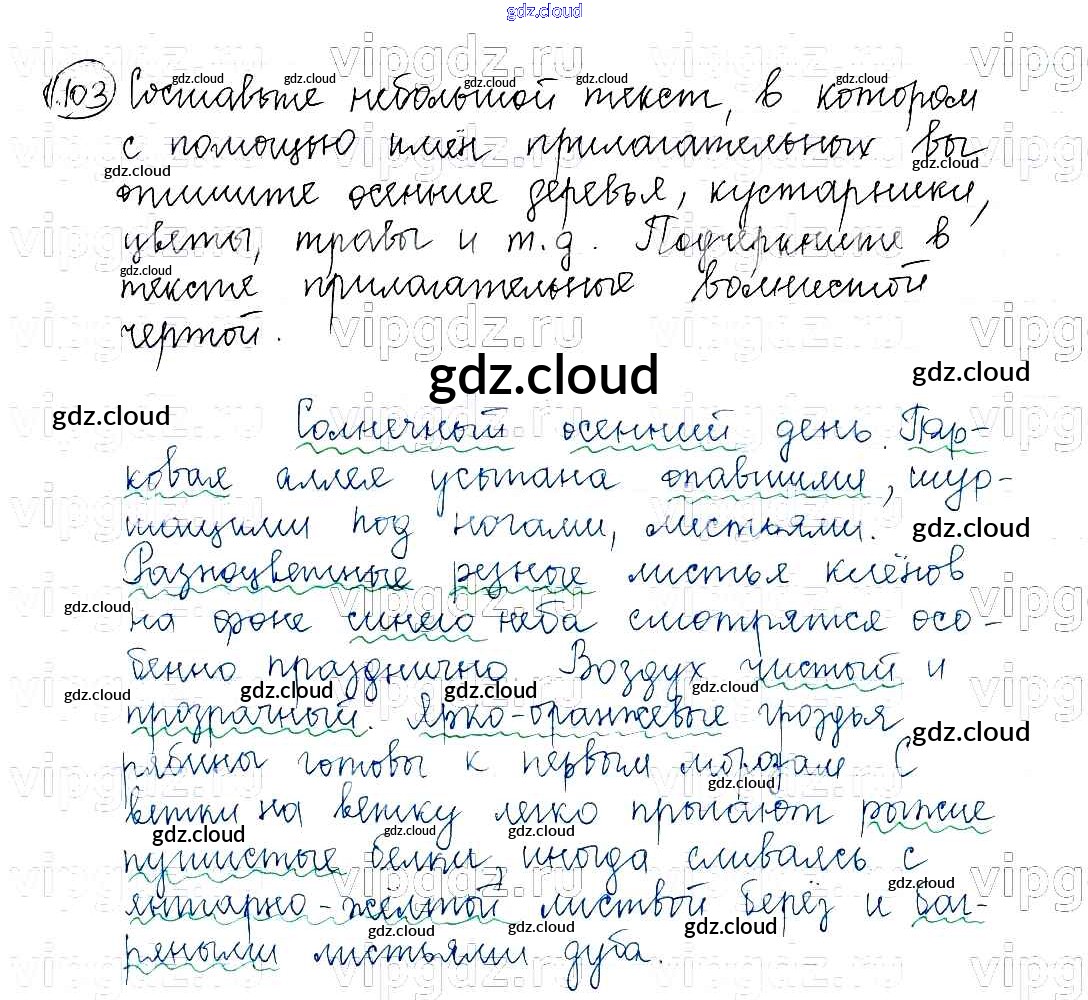 Ответ на задание 103 Учебник Русский язык за 5 (пятый) класс Баранов, Ладыженская, Тростенцова, Кулибаба, Григорян 2016, 2019 Часть 1, 2