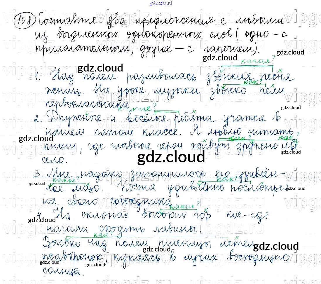 Ответ на задание 108 Учебник Русский язык за 5 (пятый) класс Баранов, Ладыженская, Тростенцова, Кулибаба, Григорян 2016, 2019 Часть 1, 2