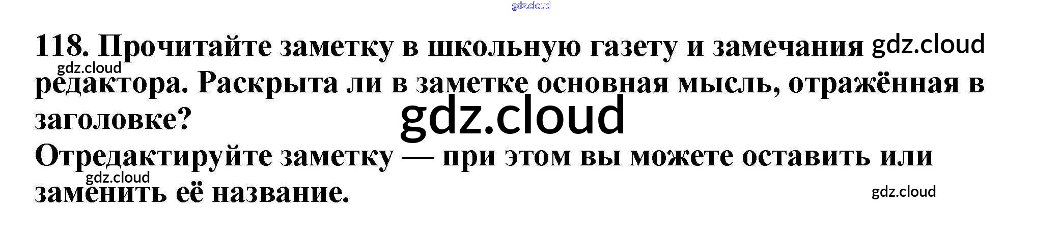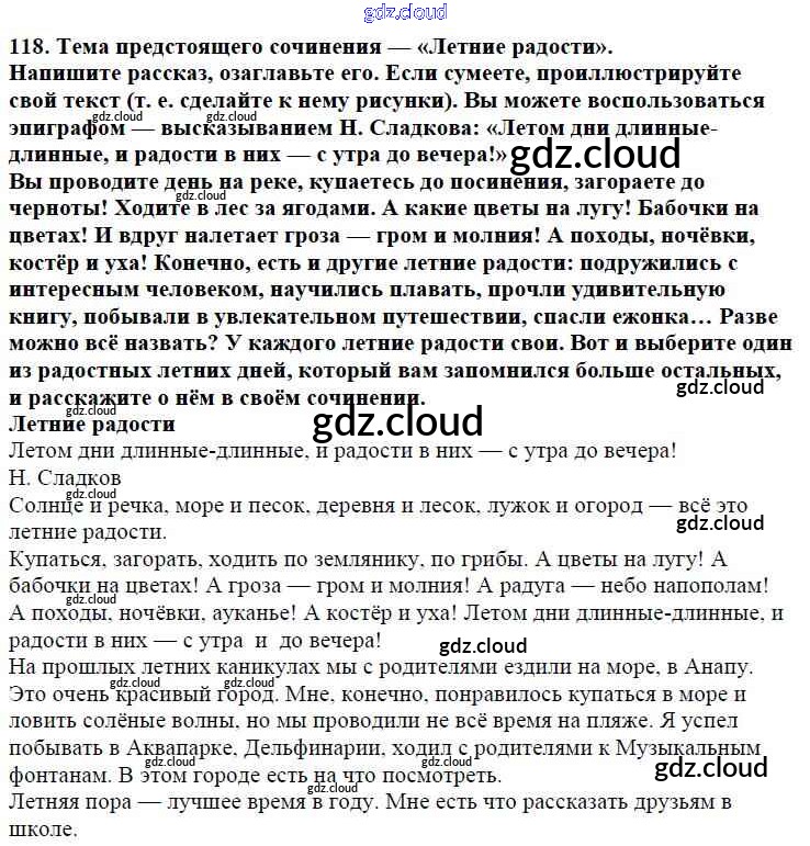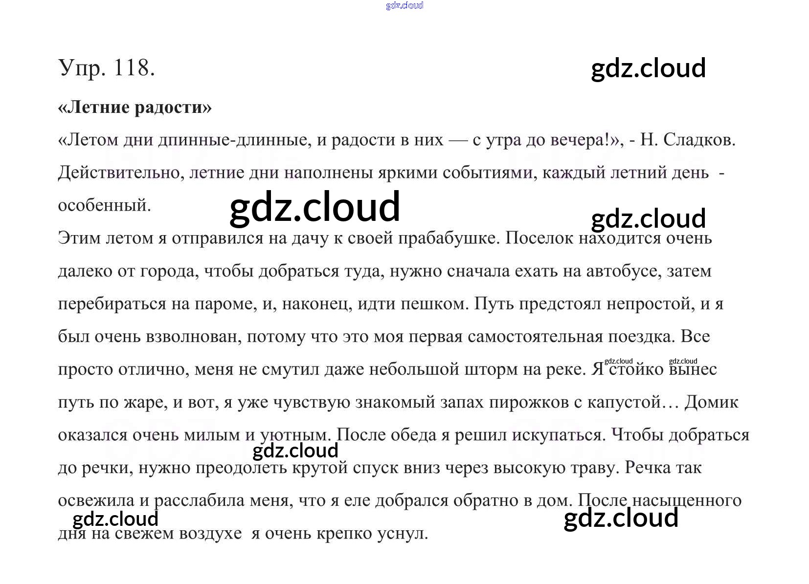 Ответ на задание 118 Учебник Русский язык за 5 (пятый) класс Баранов, Ладыженская, Тростенцова, Кулибаба, Григорян 2016, 2019 Часть 1, 2