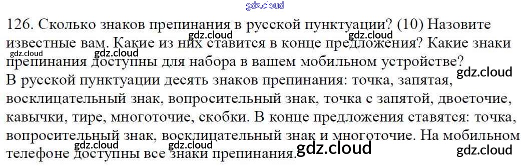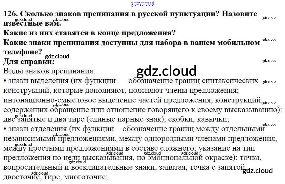 Ответ на задание 126 Учебник Русский язык за 5 (пятый) класс Баранов, Ладыженская, Тростенцова, Кулибаба, Григорян 2016, 2019 Часть 1, 2