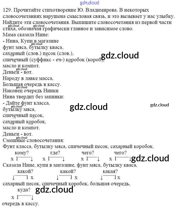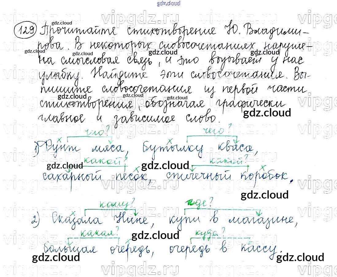 Ответ на задание 129 Учебник Русский язык за 5 (пятый) класс Баранов, Ладыженская, Тростенцова, Кулибаба, Григорян 2016, 2019 Часть 1, 2