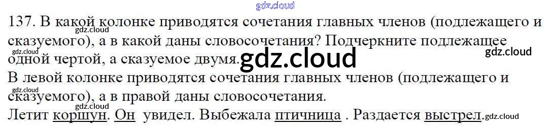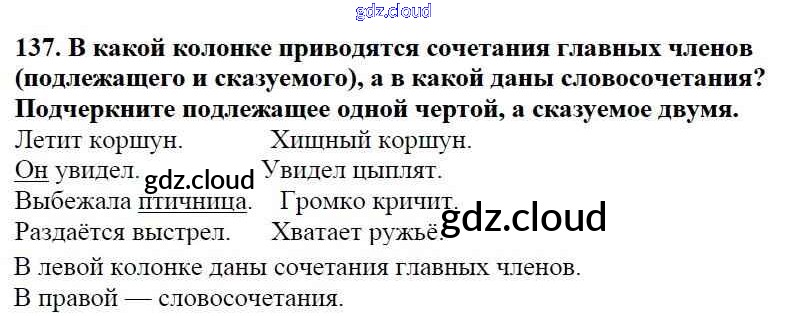 Ответ на задание 137 Учебник Русский язык за 5 (пятый) класс Баранов, Ладыженская, Тростенцова, Кулибаба, Григорян 2016, 2019 Часть 1, 2