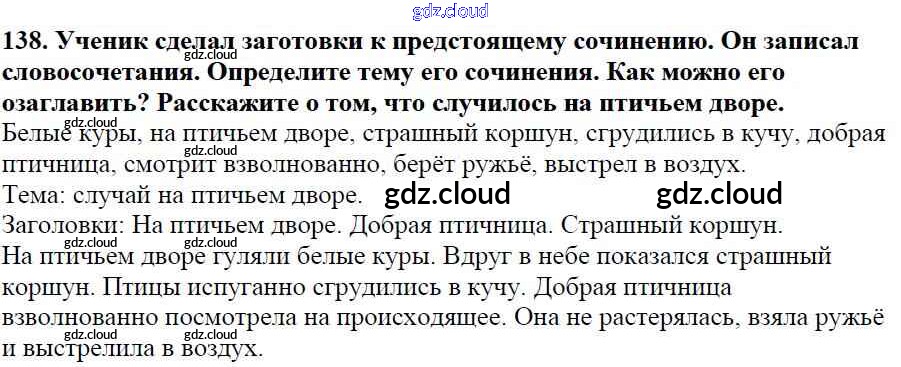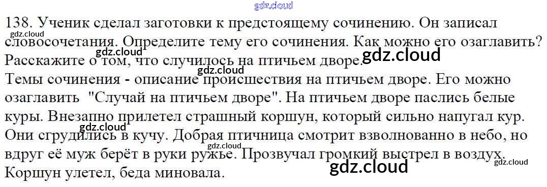 Ответ на задание 138 Учебник Русский язык за 5 (пятый) класс Баранов, Ладыженская, Тростенцова, Кулибаба, Григорян 2016, 2019 Часть 1, 2