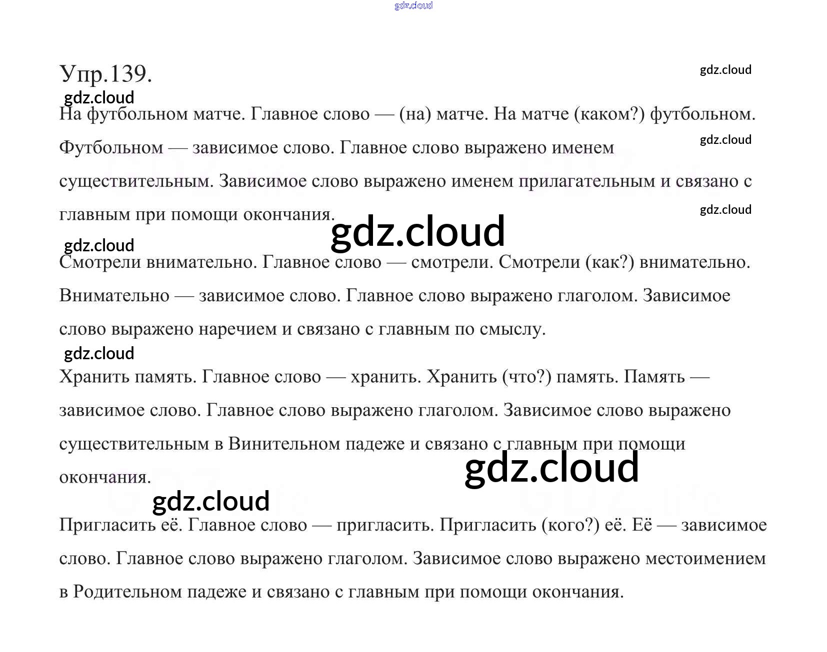 Ответ на задание 139 Учебник Русский язык за 5 (пятый) класс Баранов, Ладыженская, Тростенцова, Кулибаба, Григорян 2016, 2019 Часть 1, 2