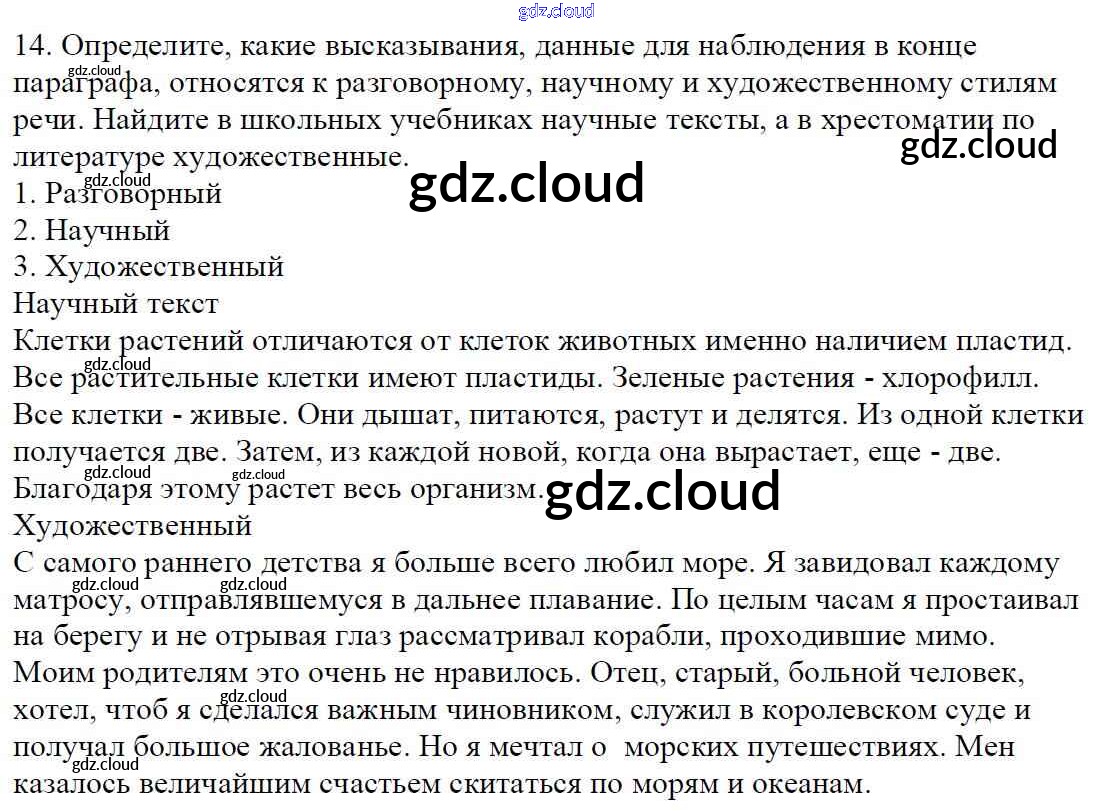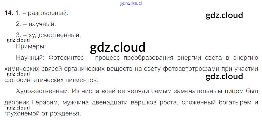 Ответ на задание 14 Учебник Русский язык за 5 (пятый) класс Баранов, Ладыженская, Тростенцова, Кулибаба, Григорян 2016, 2019 Часть 1, 2