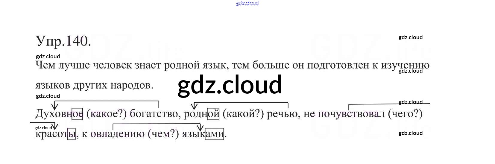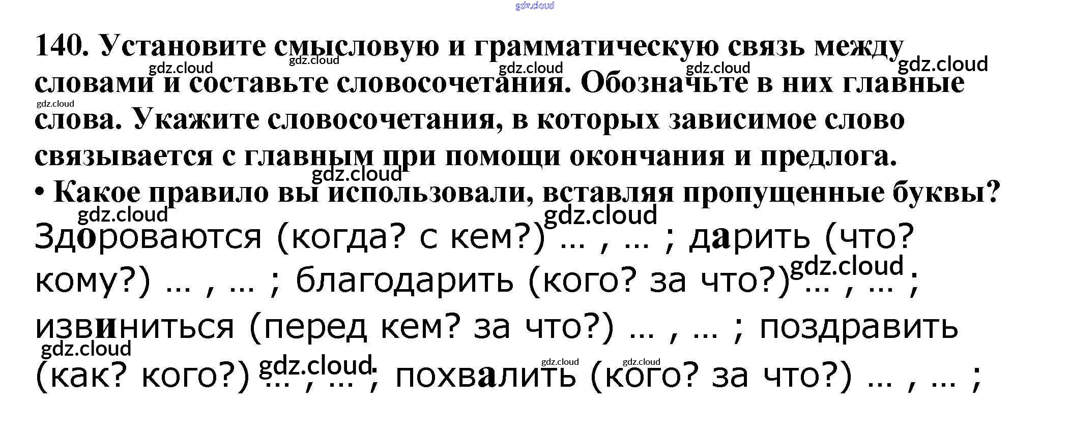 Ответ на задание 140 Учебник Русский язык за 5 (пятый) класс Баранов, Ладыженская, Тростенцова, Кулибаба, Григорян 2016, 2019 Часть 1, 2