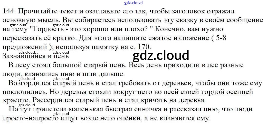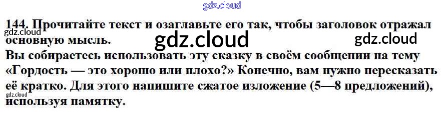 Ответ на задание 144 Учебник Русский язык за 5 (пятый) класс Баранов, Ладыженская, Тростенцова, Кулибаба, Григорян 2016, 2019 Часть 1, 2