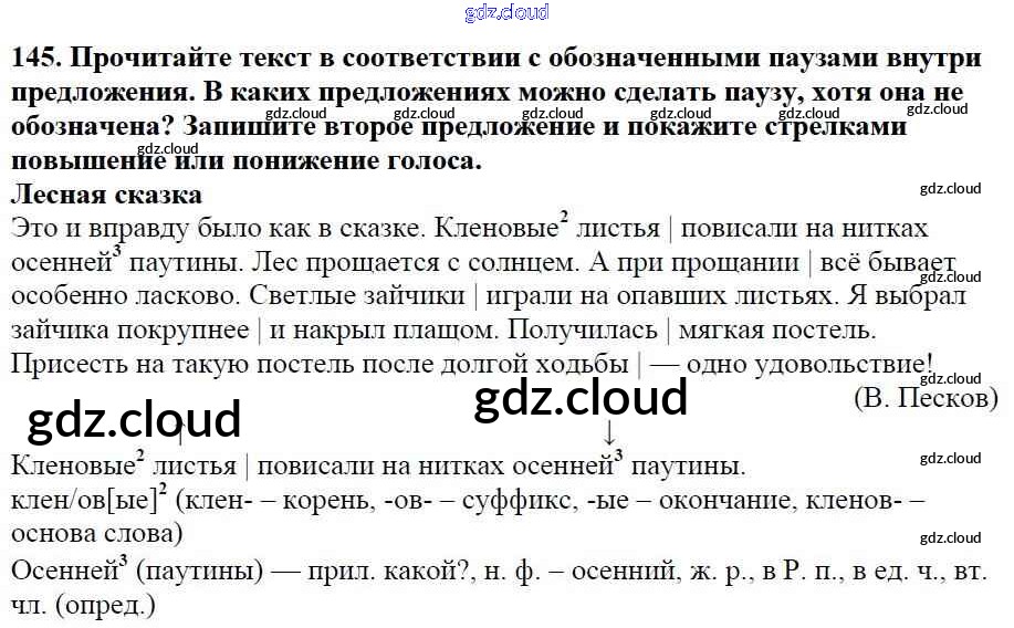 Ответ на задание 145 Учебник Русский язык за 5 (пятый) класс Баранов, Ладыженская, Тростенцова, Кулибаба, Григорян 2016, 2019 Часть 1, 2