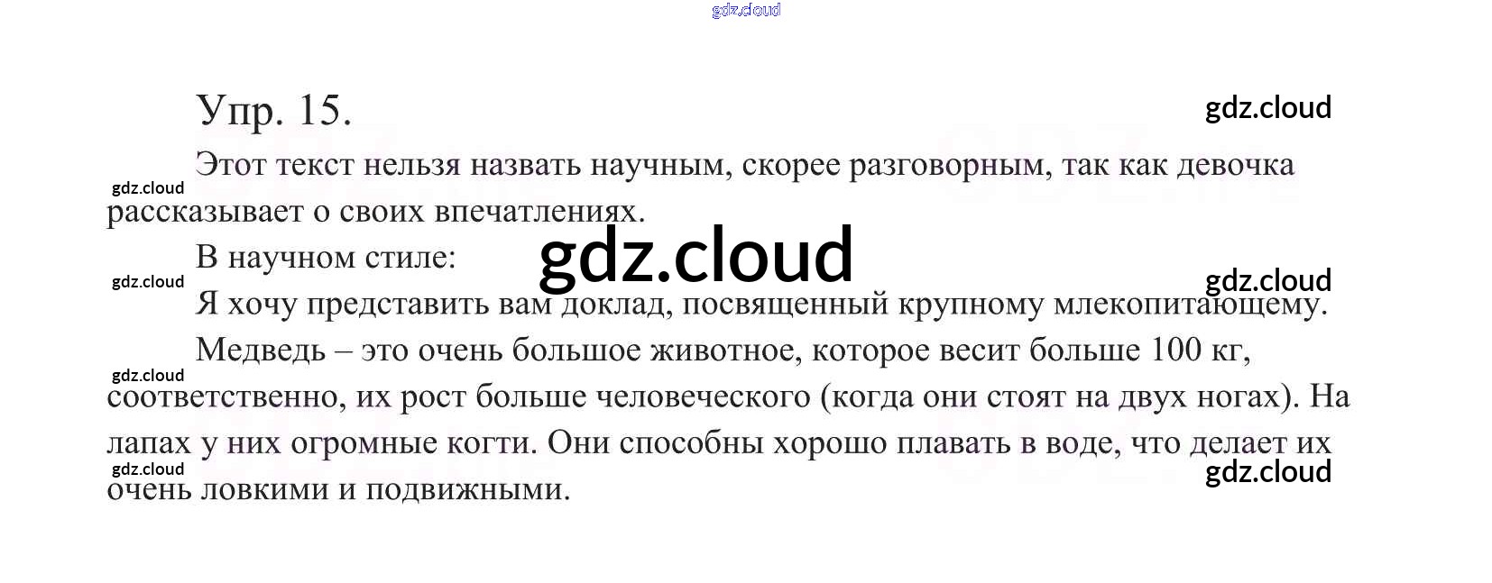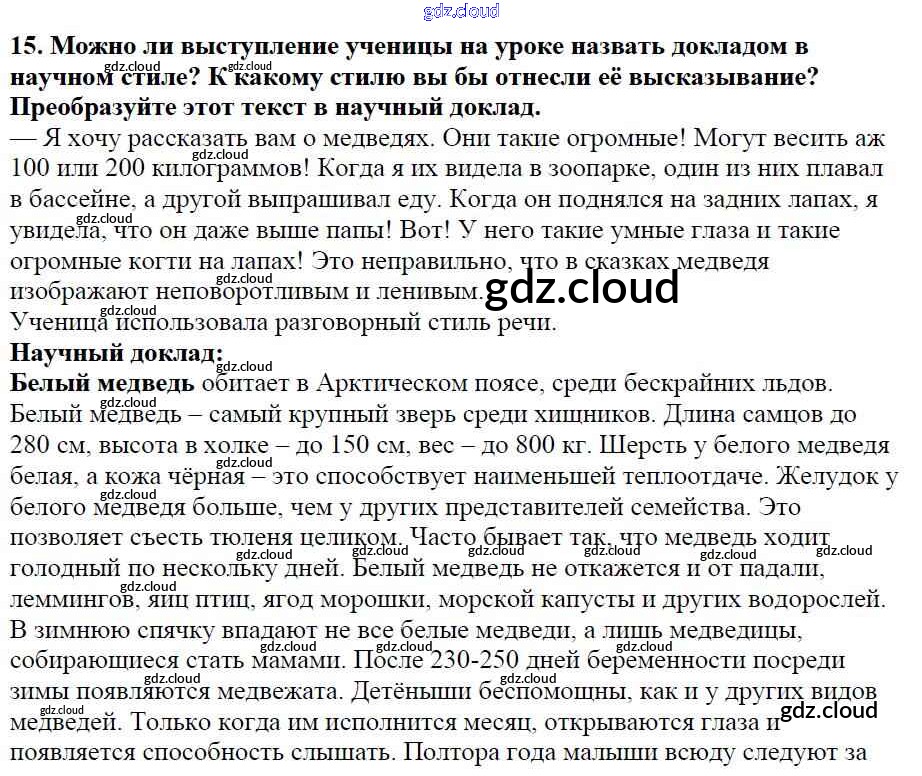 Ответ на задание 15 Учебник Русский язык за 5 (пятый) класс Баранов, Ладыженская, Тростенцова, Кулибаба, Григорян 2016, 2019 Часть 1, 2