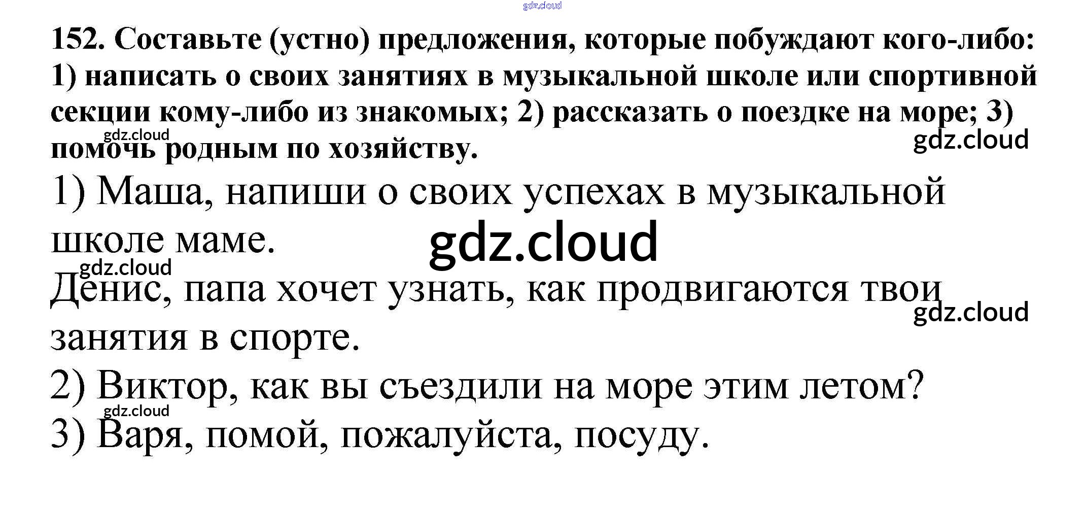 Ответ на задание 152 Учебник Русский язык за 5 (пятый) класс Баранов, Ладыженская, Тростенцова, Кулибаба, Григорян 2016, 2019 Часть 1, 2