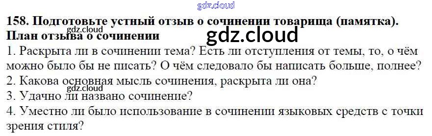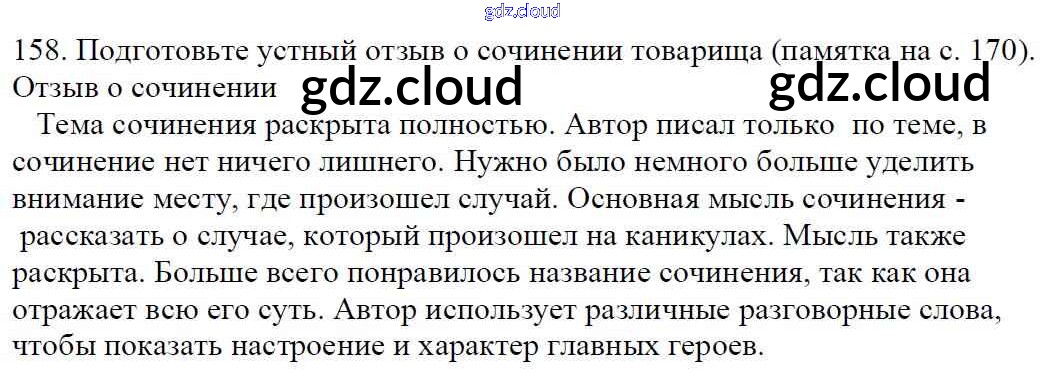Ответ на задание 158 Учебник Русский язык за 5 (пятый) класс Баранов, Ладыженская, Тростенцова, Кулибаба, Григорян 2016, 2019 Часть 1, 2