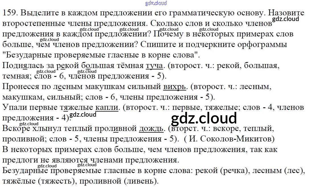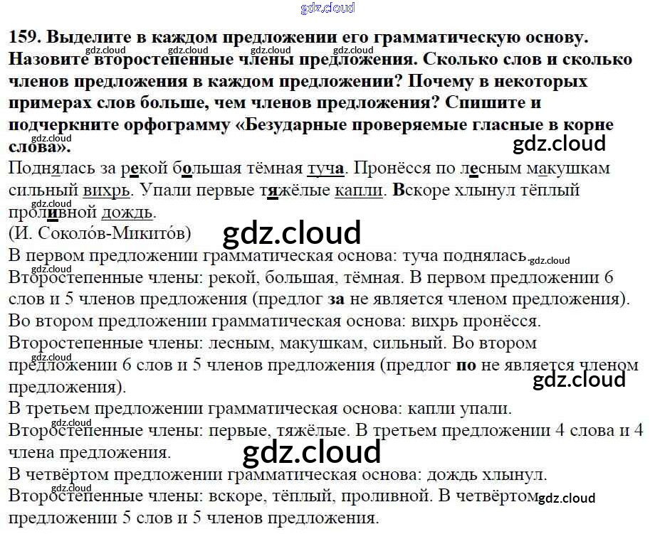 Ответ на задание 159 Учебник Русский язык за 5 (пятый) класс Баранов, Ладыженская, Тростенцова, Кулибаба, Григорян 2016, 2019 Часть 1, 2