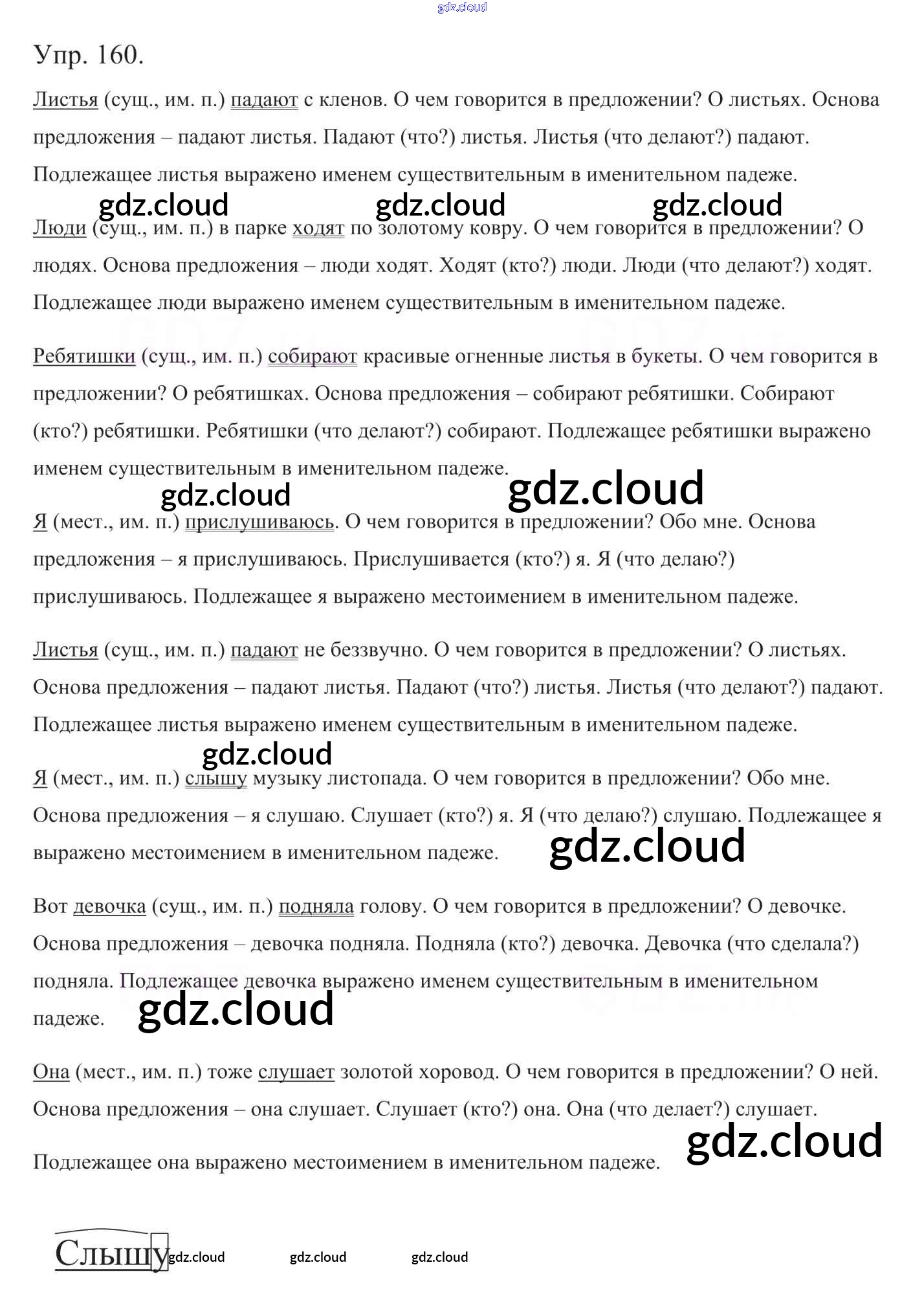 Ответ на задание 160 Учебник Русский язык за 5 (пятый) класс Баранов, Ладыженская, Тростенцова, Кулибаба, Григорян 2016, 2019 Часть 1, 2