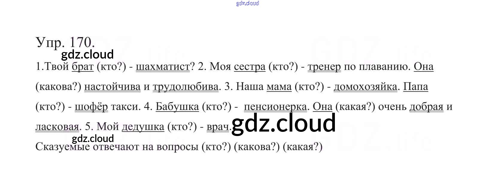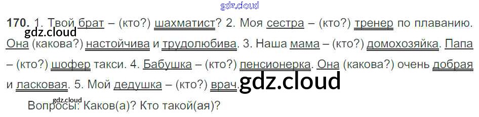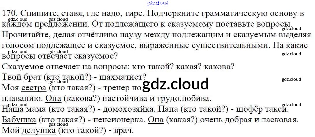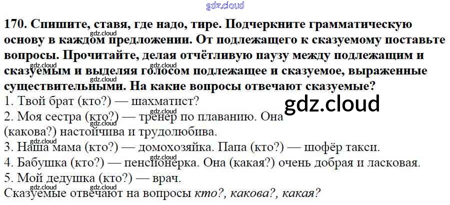 Ответ на задание 170 Учебник Русский язык за 5 (пятый) класс Баранов, Ладыженская, Тростенцова, Кулибаба, Григорян 2016, 2019 Часть 1, 2