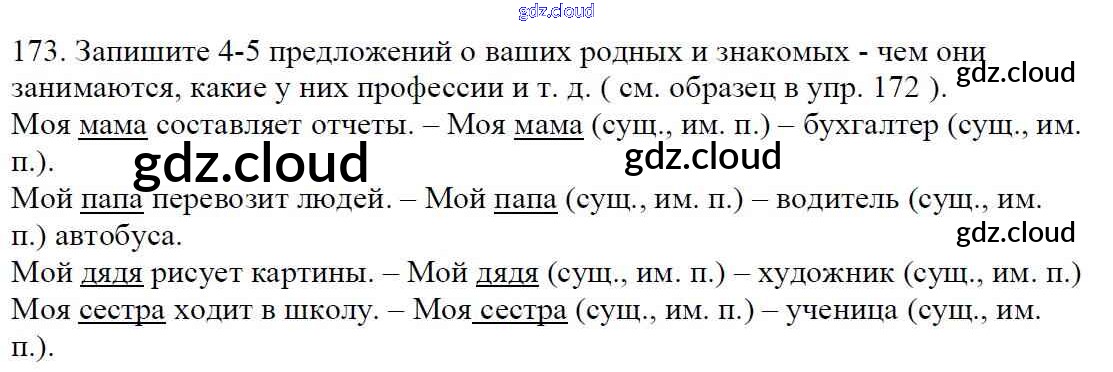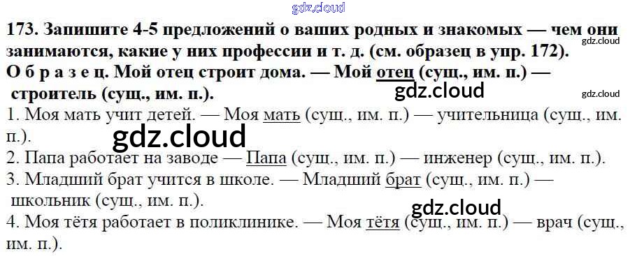 Ответ на задание 173 Учебник Русский язык за 5 (пятый) класс Баранов, Ладыженская, Тростенцова, Кулибаба, Григорян 2016, 2019 Часть 1, 2